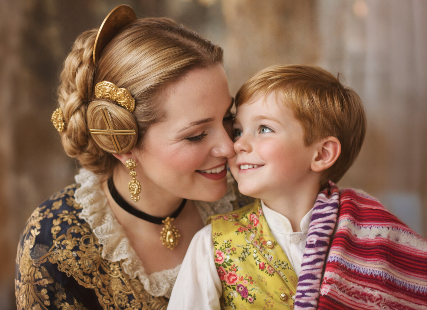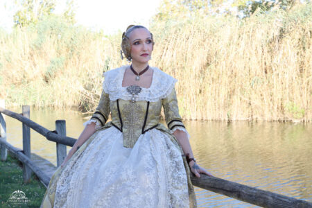 📸 Retrato clásico, planos de detalle de las joyas (peinetas y aderezo) y cuerpo entero. Sesión en estudio con fondo neutro para resaltar los colores del espolín o la seda.